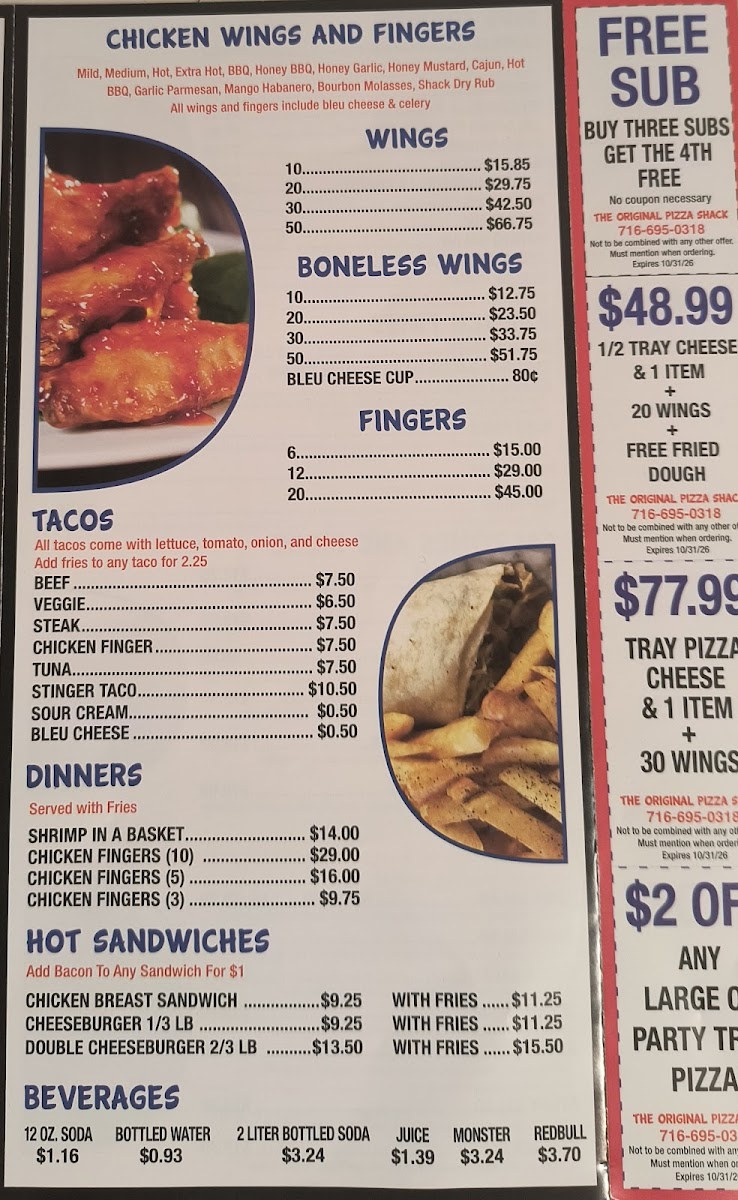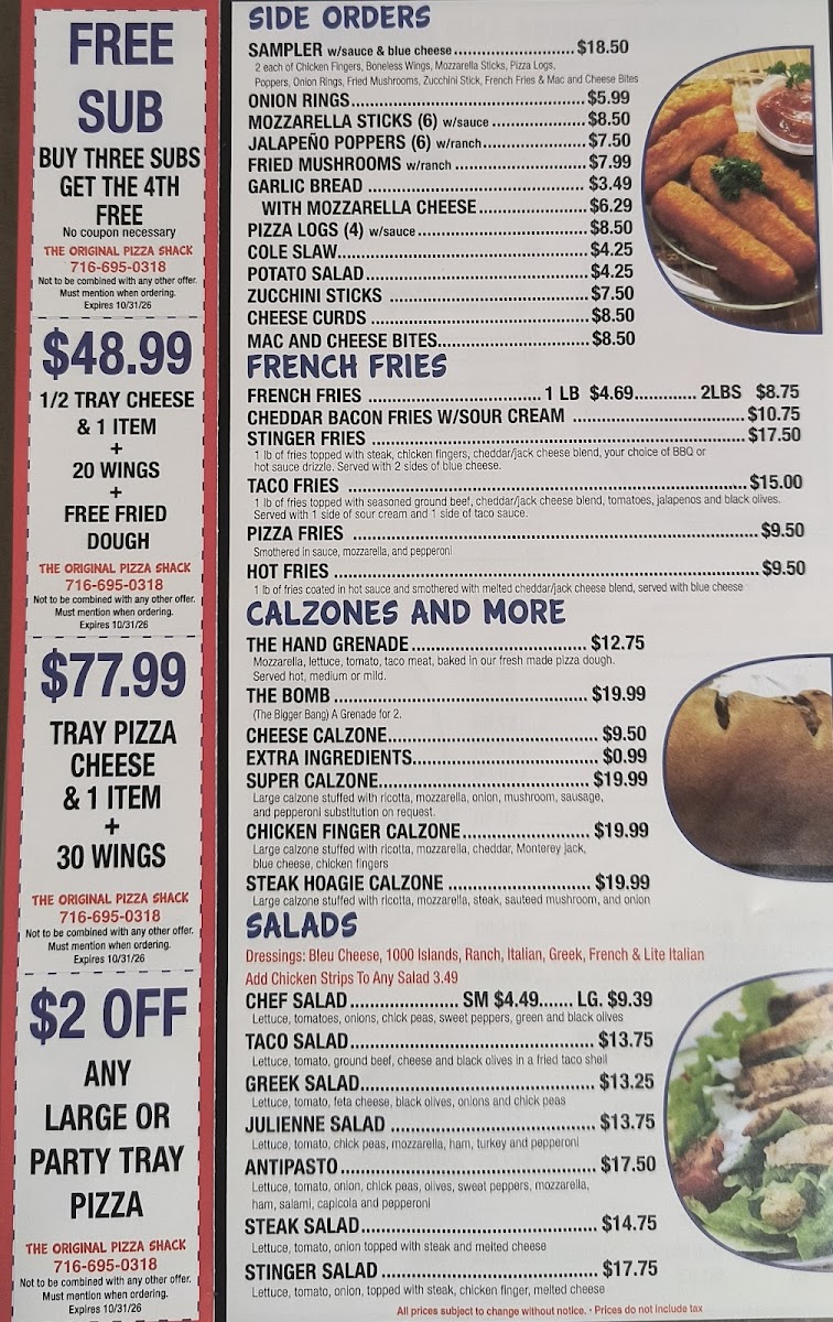 The Original Pizza Shack Menu